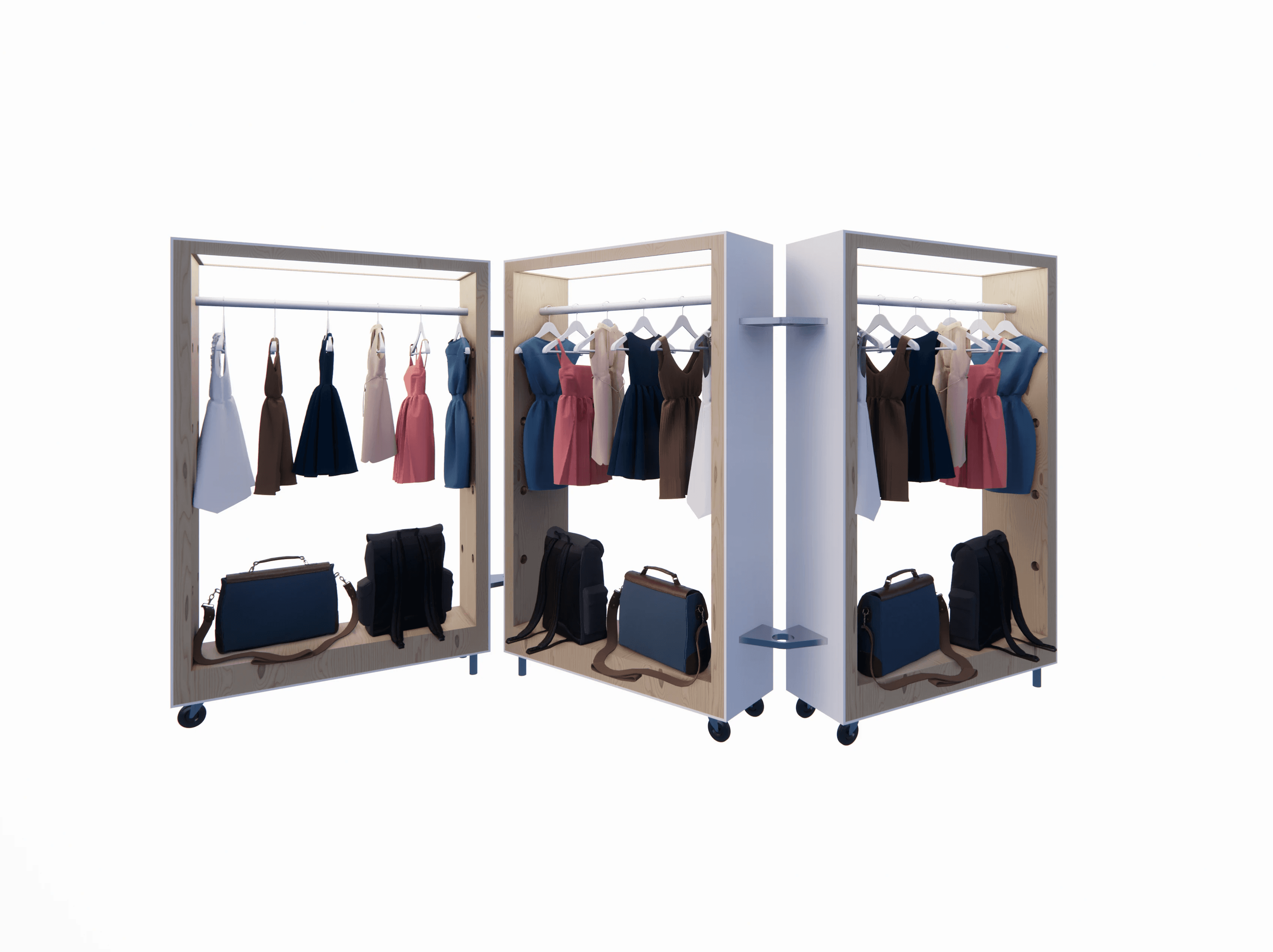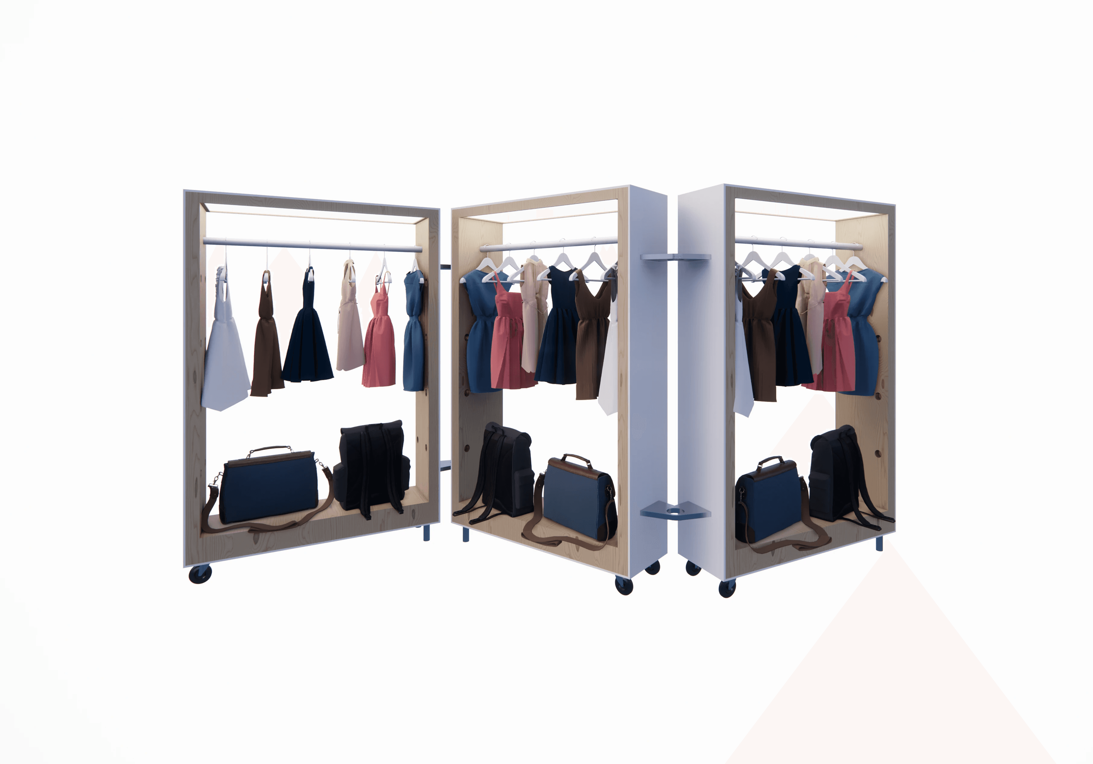 The space needed to be hyper flexible so that products from jewellery to winterwear can be accommodated with minimal set up time each day.